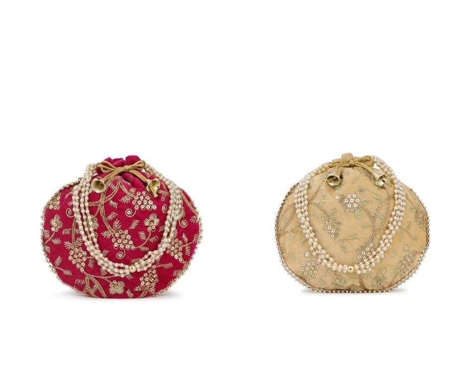 Be the first to review “Designer Embroidered Potli Bag Combo- Pink & Beige” Cancel reply