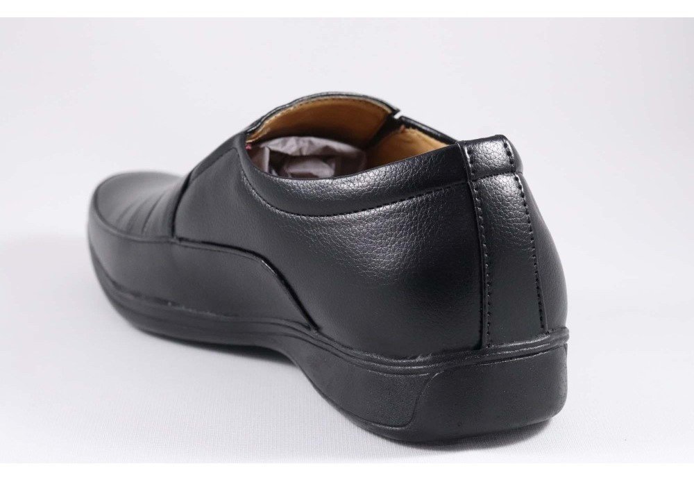 Men’s Faux Leather Formal Shoes, ? Color: Black, ? Material: Faux Leather, ? : 6, ? Closure Type: Slip-On, ? Heel Type: Flat, ? Type: Formal Shoes, ? Disclaimer: The color of actual product may vary slightly from the images provided due to photographic lighting conditions and difference in screen resolutions.